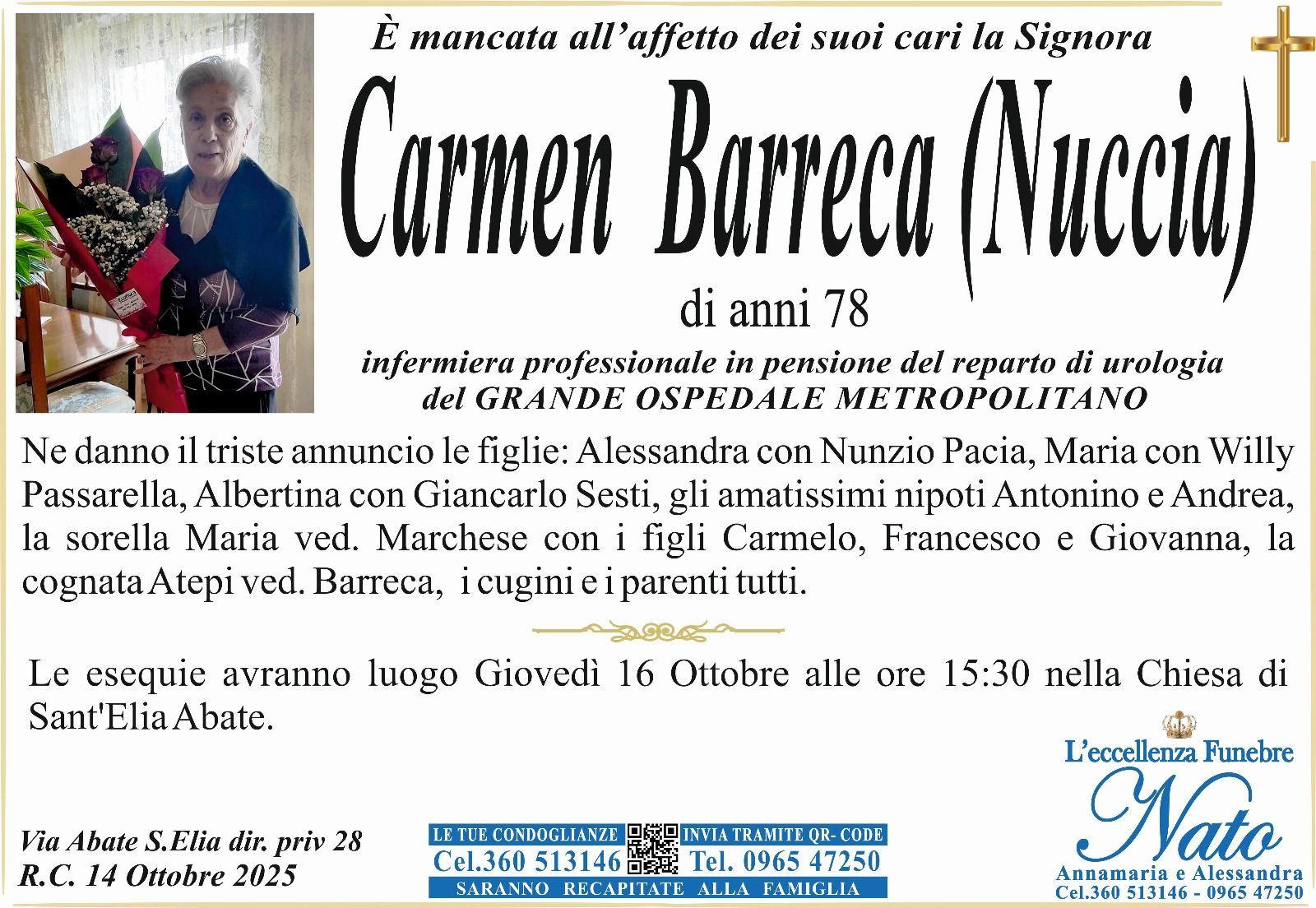 Ne danno il triste annuncio i figli Elena con il marito Rocco Attinà, Antonello con la compagna Giulia Dieni, Santo con la moglie Donatella Ravenda, Piero con la moglie Francesca Pennestrì, Salvatore con la compagna Cinzia Latella, la sorella Antonia ved. Bernardo, le cognate Tita Morabito ved. Melidona e Ferdinanda Scordo, gli amati nipoti, Caterina e i parenti tutti.