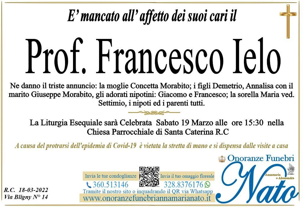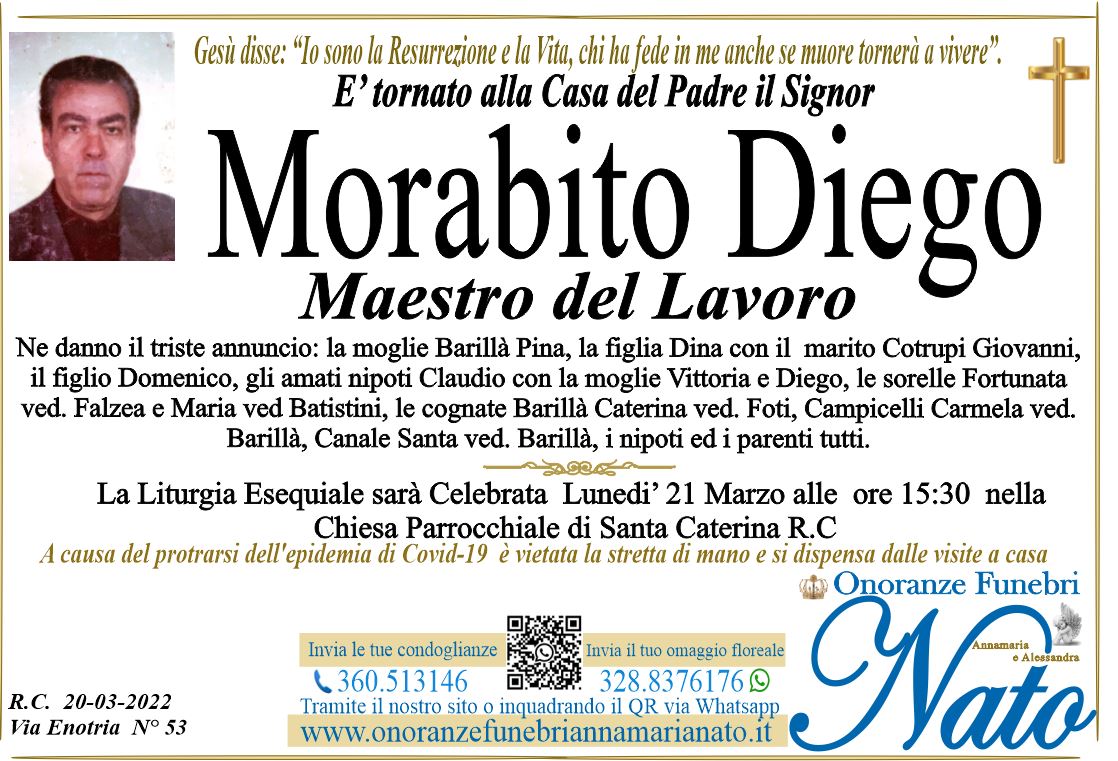 Ne danno il triste annuncio la moglie Francesca Morabito, le figlie Angela con il marito Eugenio De Benedetto, Ketty con il marito Gianni Zarà, gli amati nipoti: Davide, Laura e Martina, le sorelle Angela ved. Destefano e Antonella ved. Giordano, il cognato Domenico Ieracitano ved. Meliadò, i cognati Morabito: Anna ved. Orlando e Fortunato con la moglie Annamaria Candeloro , gli altri nipoti ed i parenti tutti.